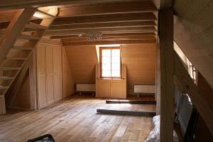Ausbau eines Dachbodens mit Fenster, Wandschränken und Spitzbodentreppe